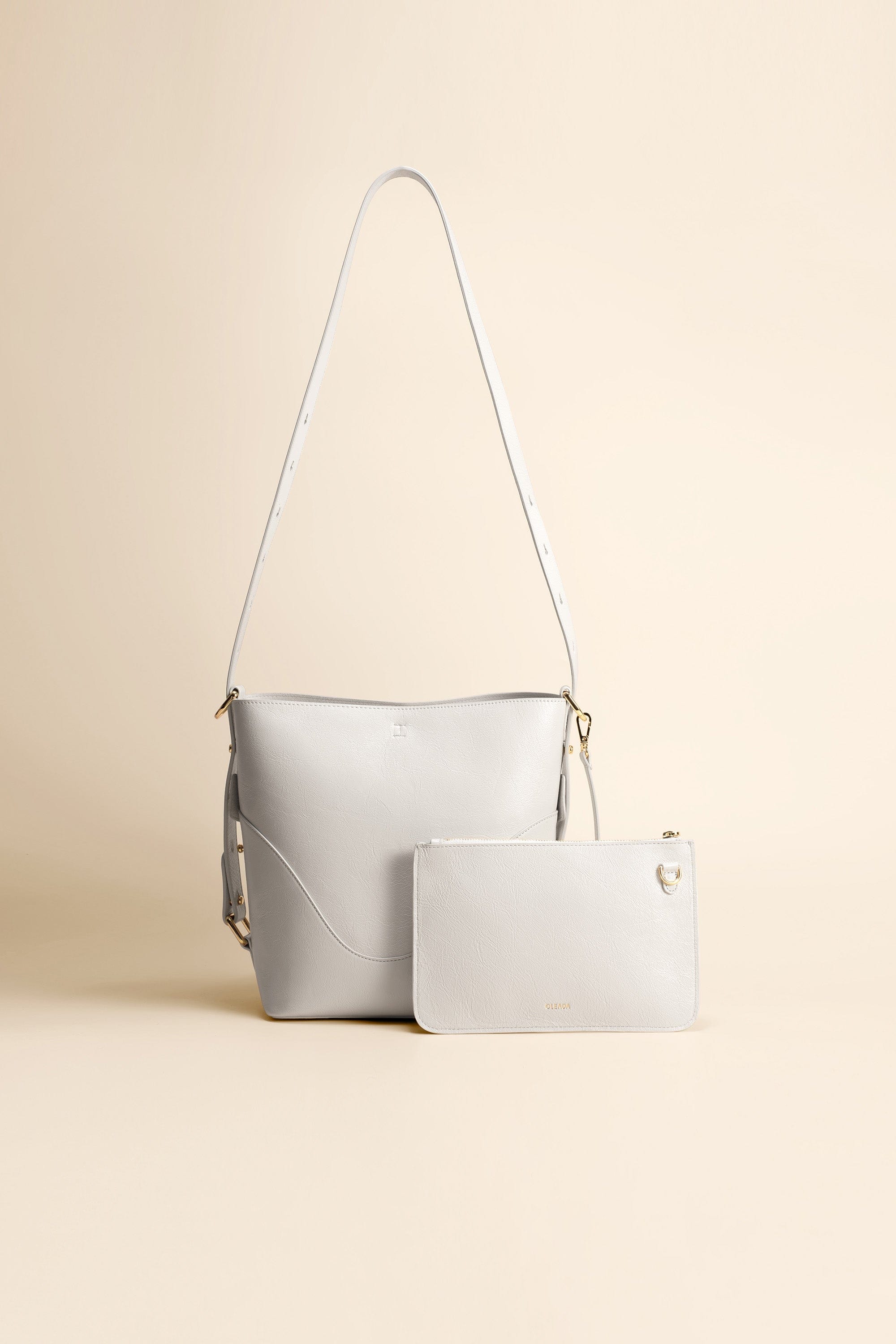 OLEADA NYC Bucket Bag > Leather Tote Bag For Women > Mini Handbag > Convertible To Shoulder Bag > Fits iPad Mini> Color_Blanc Mini Marina Soft Bucket