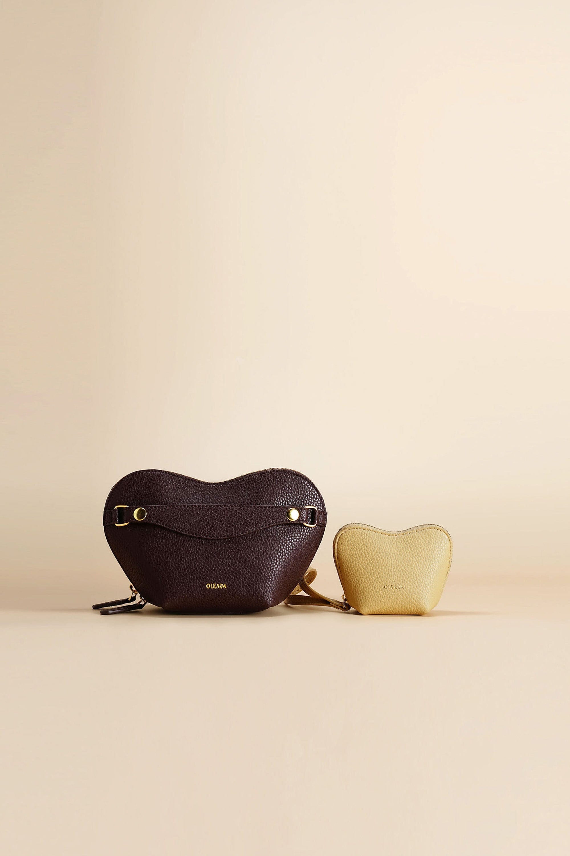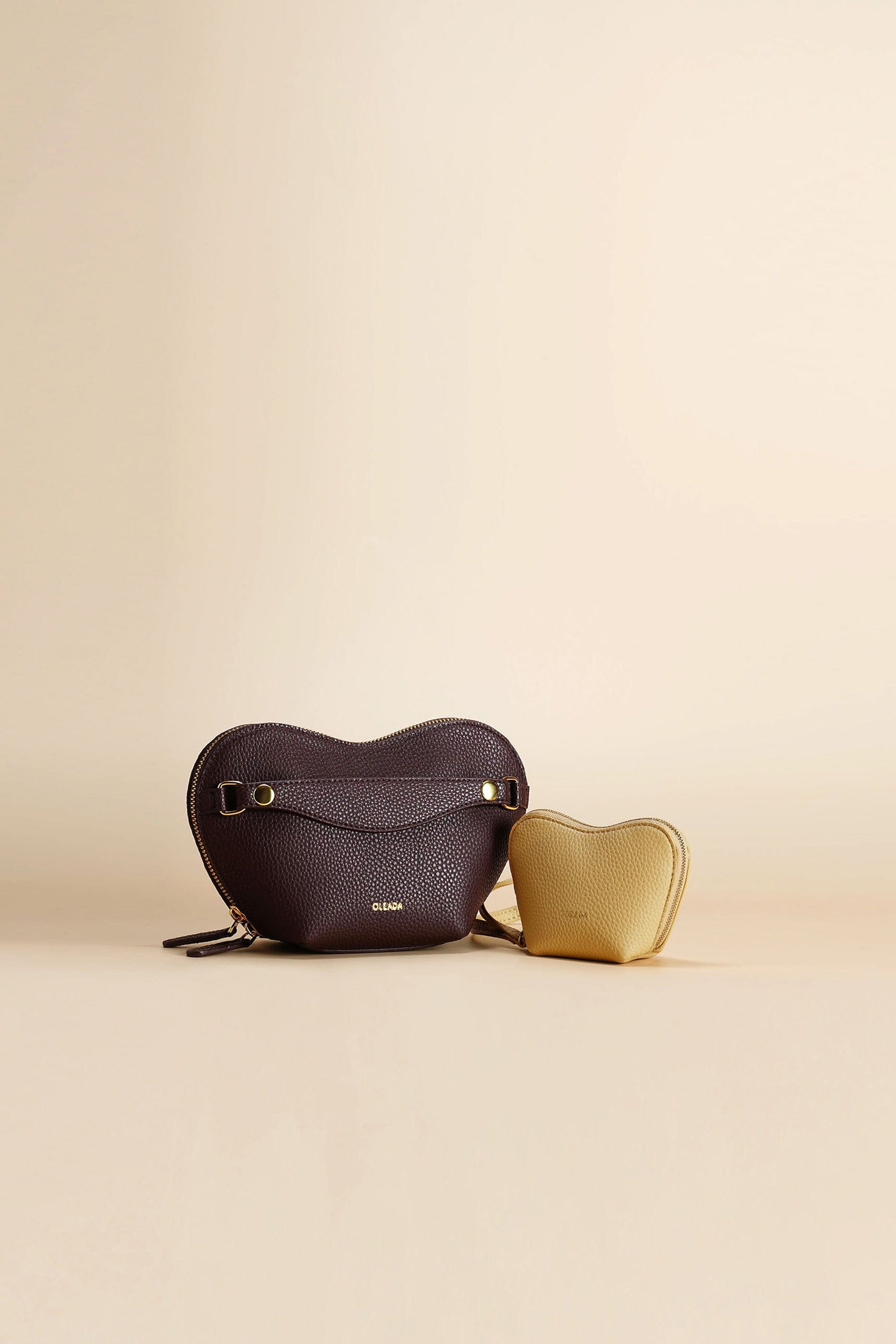 OLEADA NYC Apparel and Accessories > Women > Small Leather Goods > Leather Case Color_Cocoa Le Cœur Set