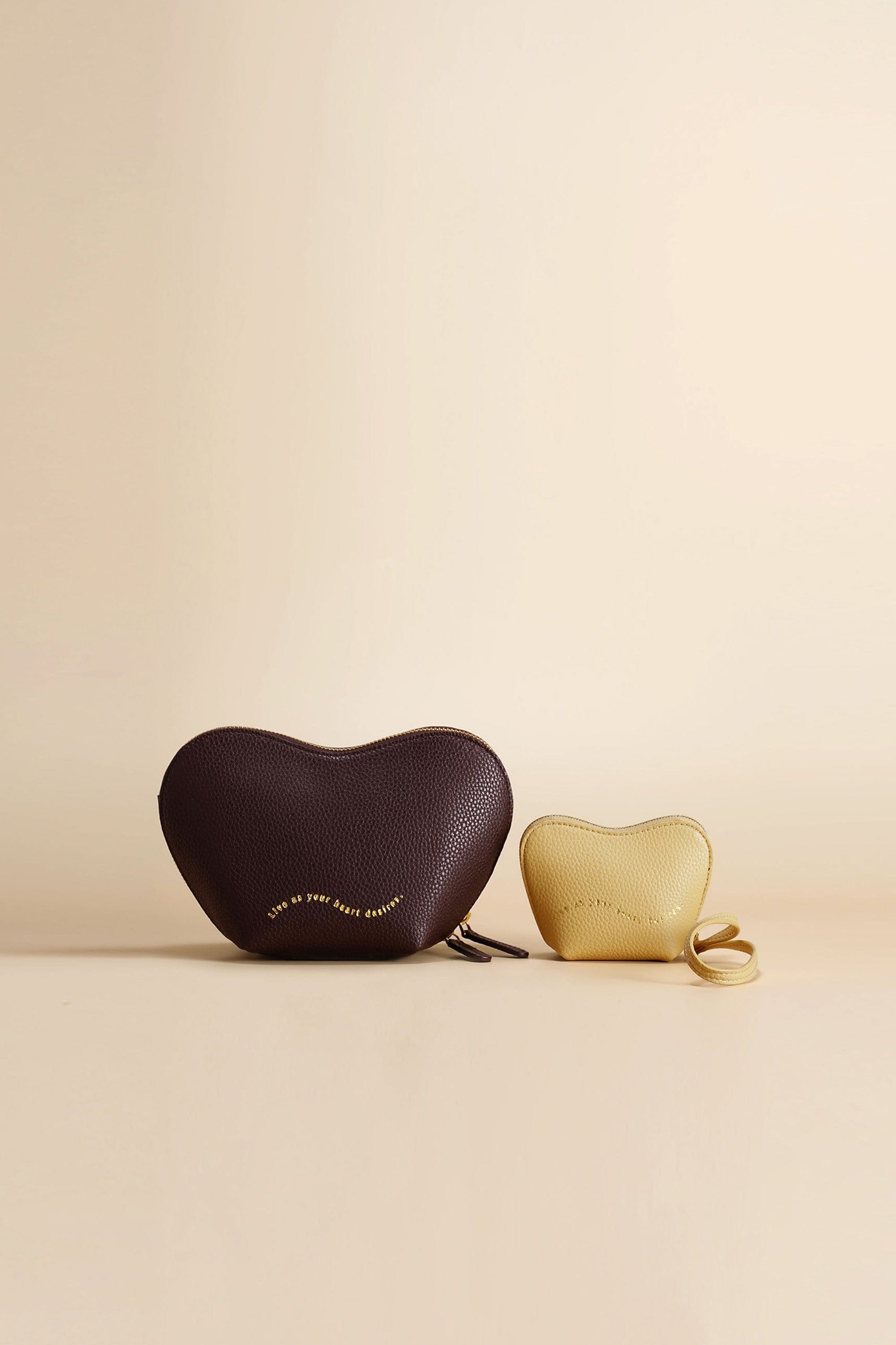 Crafted from recycled leather, the Le Coeur Set adds playful heart-shaped charm to your collection. The duo includes a larger case for travel essentials and a mini case for small accessories, blending whimsy with practical functionality for organizing your on-the-go essentials.