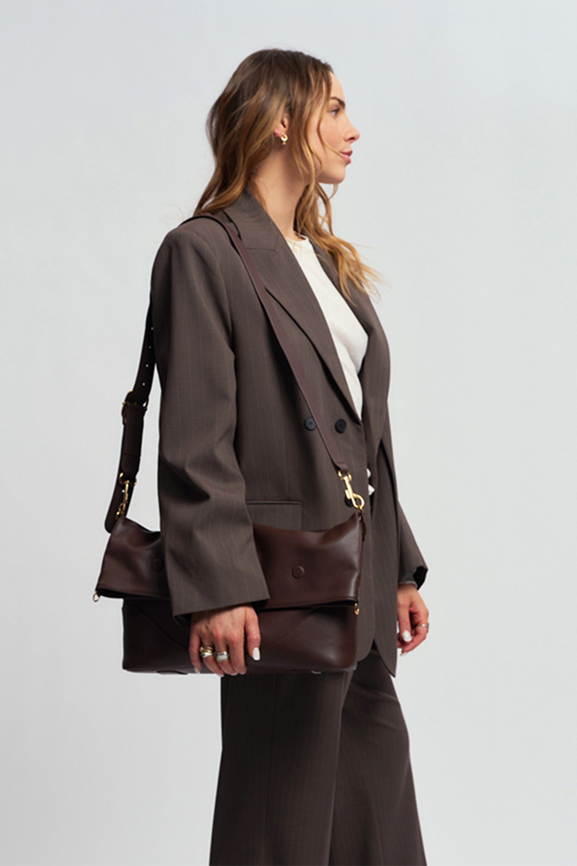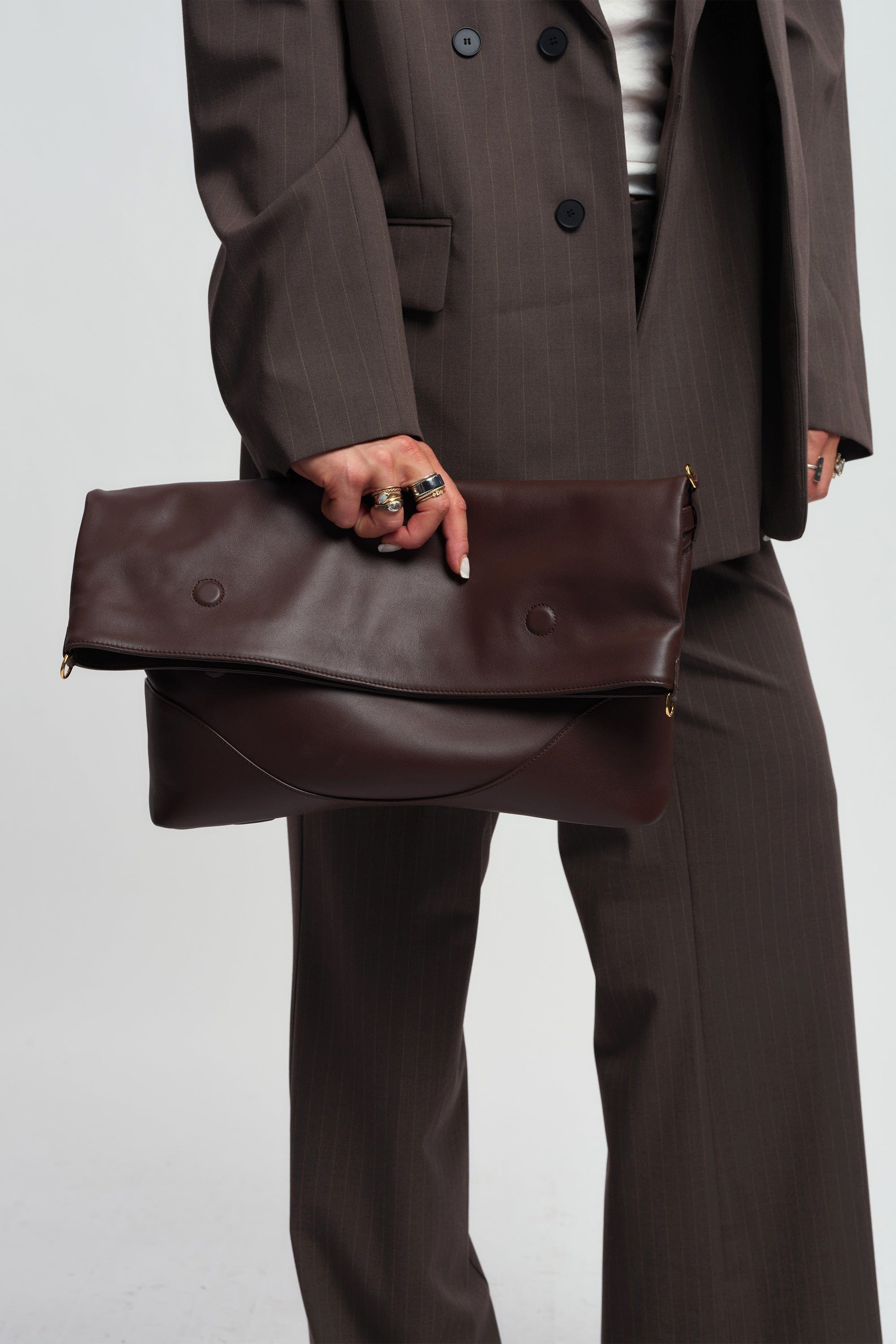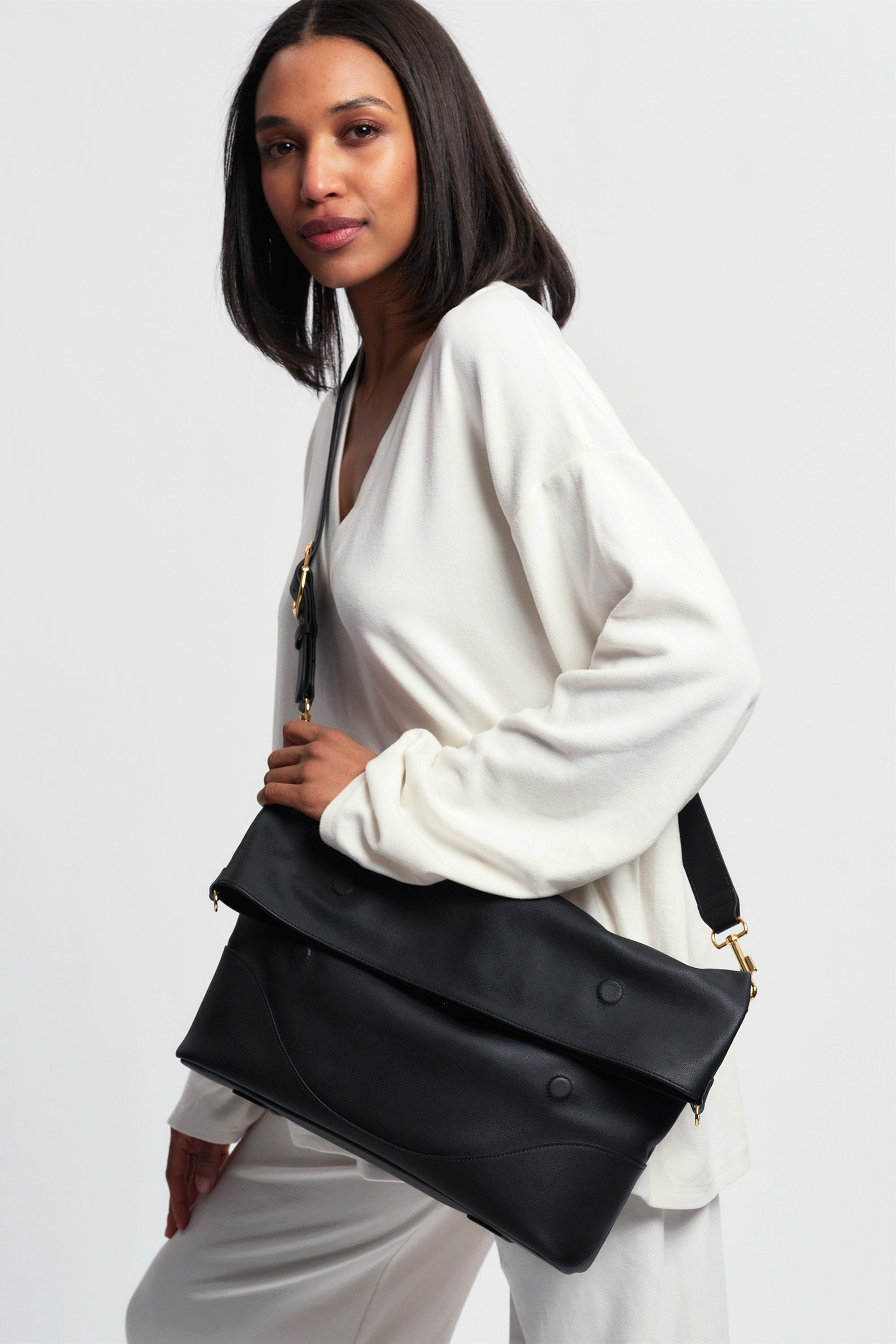 An engineered foldover conversion system, modular strap, and signature hardware allow you to shift style in seconds, offering ten distinct ways to wear from day to night.
