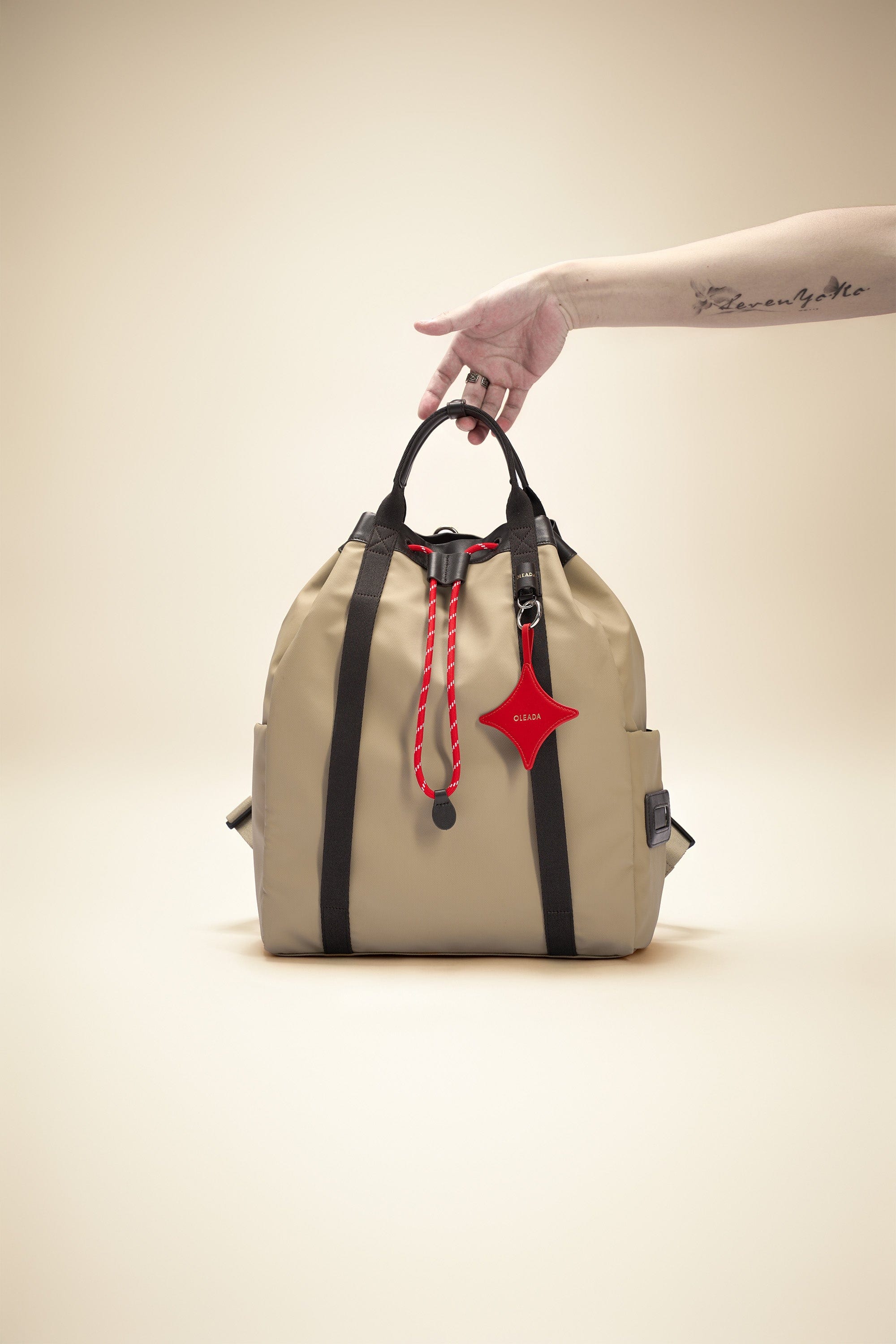 OLEADA NYC convertible travel bags > work-to-travel backpack > commuter bags > water-resistant vegan bags > stylish multi-use backpack Color_Abu Dhabi AnyWear Tennis Backpack