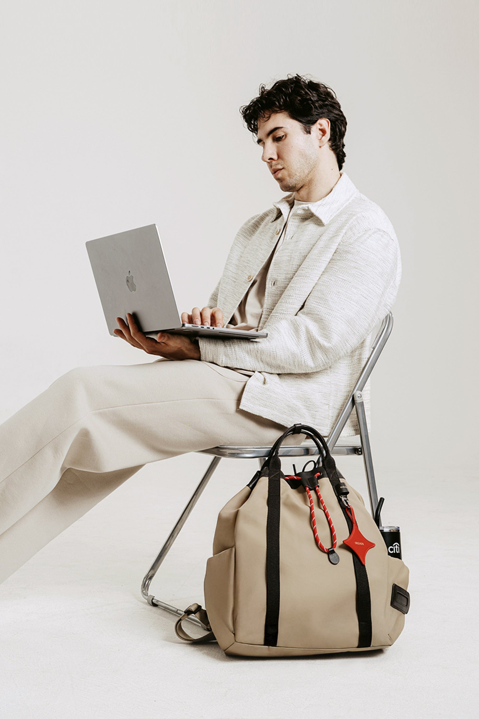 Made from waterproof, stain-resistant materials, it’s built to keep up with your active lifestyle. A top-loading drawstring opening gives quick access, while dual bottle holders and a padded sleeve protect your 14" laptop. The interior compartment fits a standard racket when you’re on the court — so you’re always ready for a match or a meeting. Structured leather handles and convertible straps let you carry it your way, whether on the court, in the café, or anywhere in between.