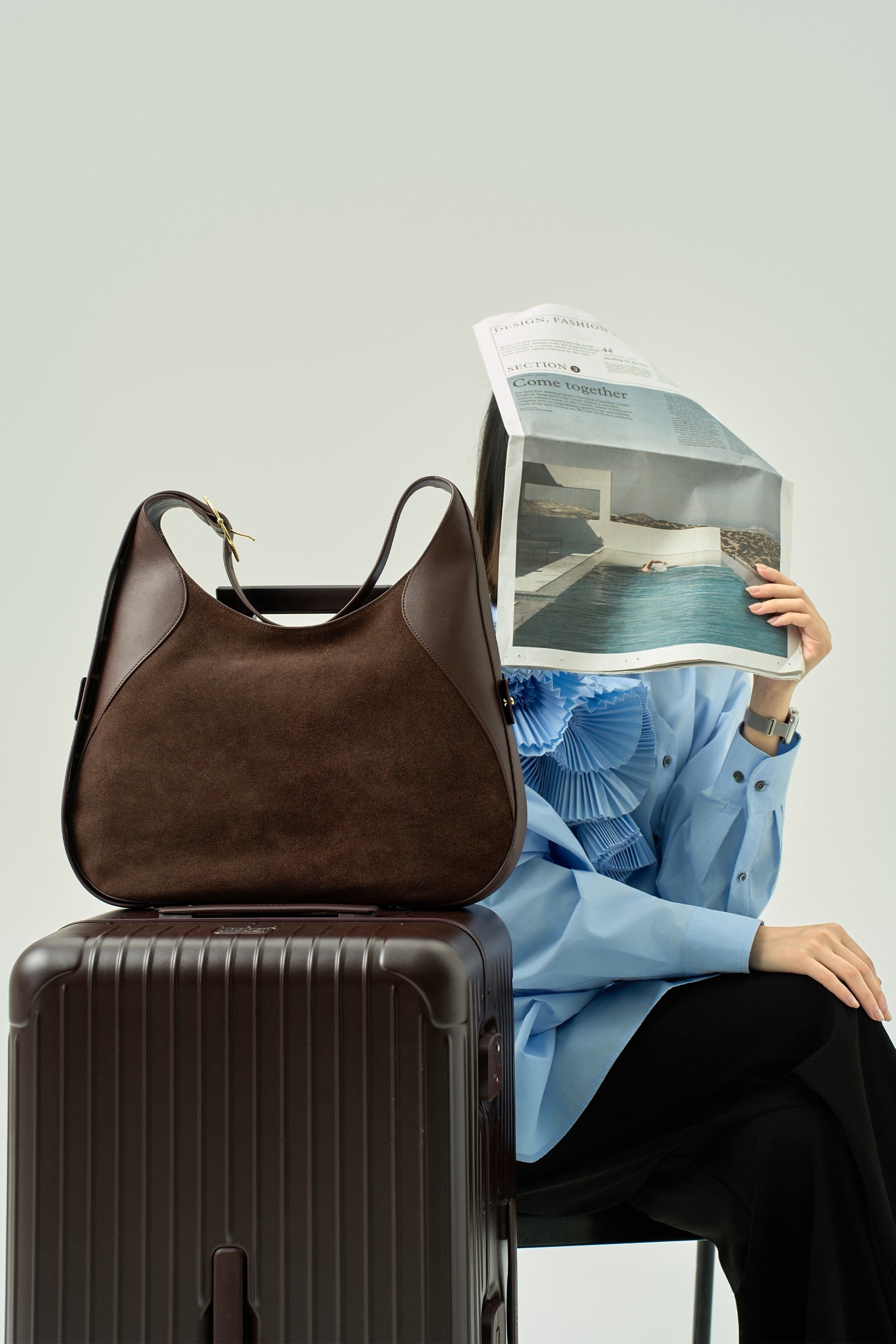 The Marina Hobo in eco-suede leather redefines texture and tone. It's velvety finish and fluid silhouette redefine effortless, everyday luxury. Designed to rest comfortably on your shoulder, it offers ample space for a 14" laptop and daily essentials. Finished with subtle gold-tone accents and a comfortable drape, this suede workbag shows that you can be soft, and still mean business.