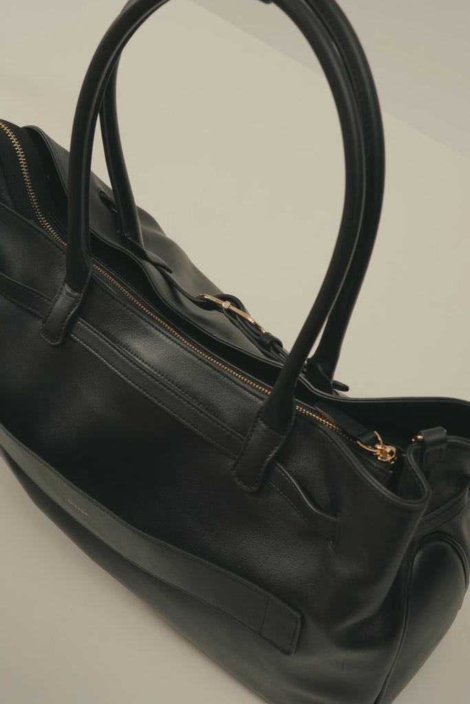 OLEADA NYC Tote Bag > Leather Tote Bag For Women > Mini Handbag > Convertible To Shoulder Bag > Fits 14" laptop> Color_Onyx Marina Tote
